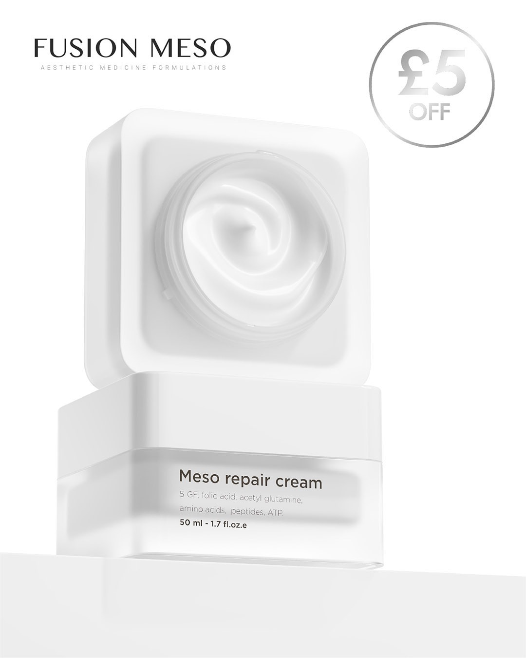 The Fusion Meso Repair Cream is designed to accelerate skin recovery post-treatment or during periods of irritation. Packed with peptides, ceramides, and soothing actives, it strengthens the skin barrier, reduces inflammation, and restores hydration.